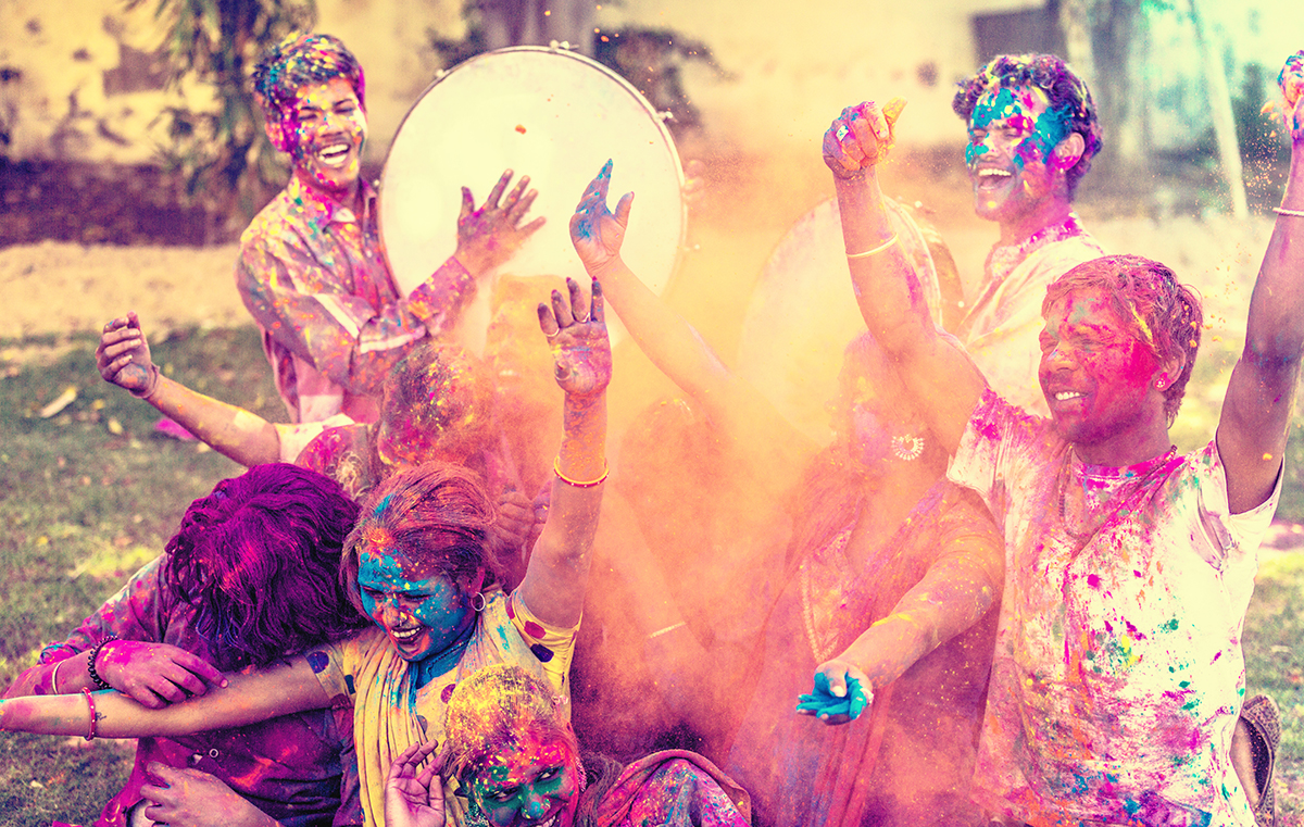 Strooien met poederkleurstoffen (Gulal)