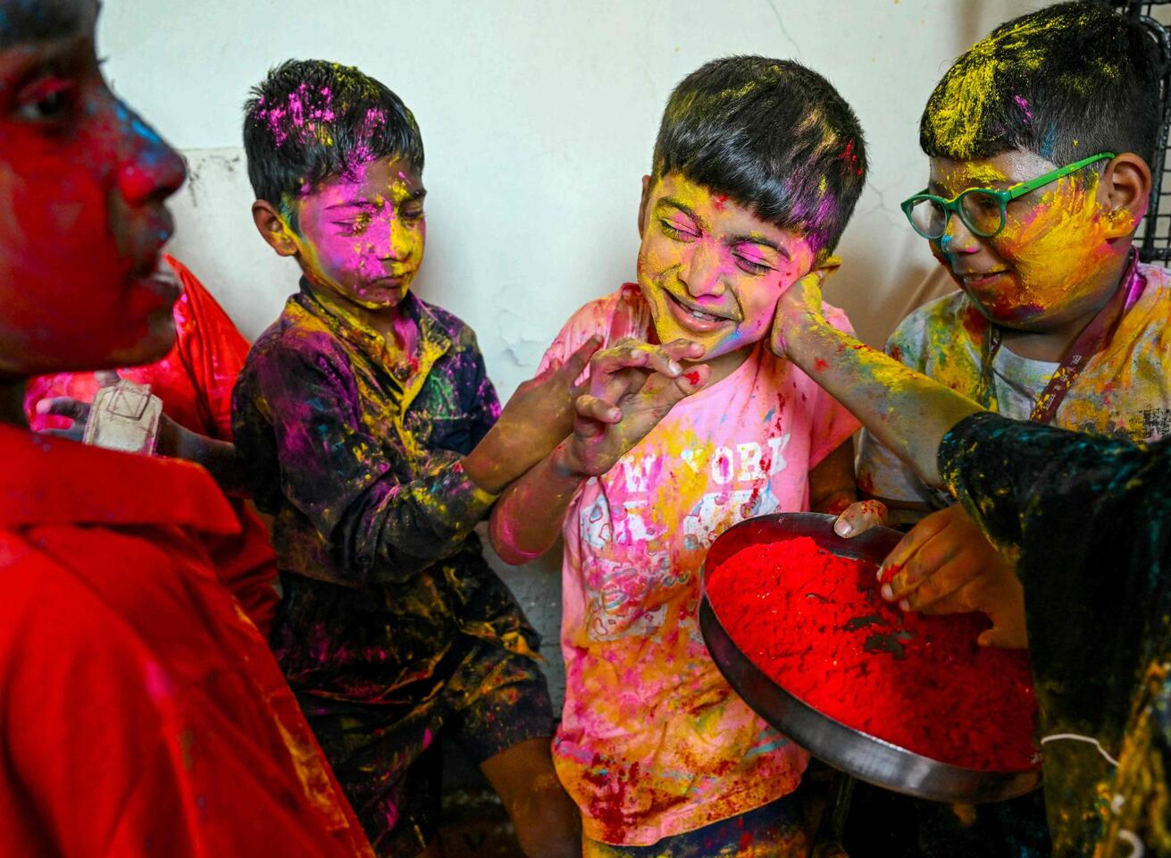 Strooien met poederkleurstoffen (Gulal)
